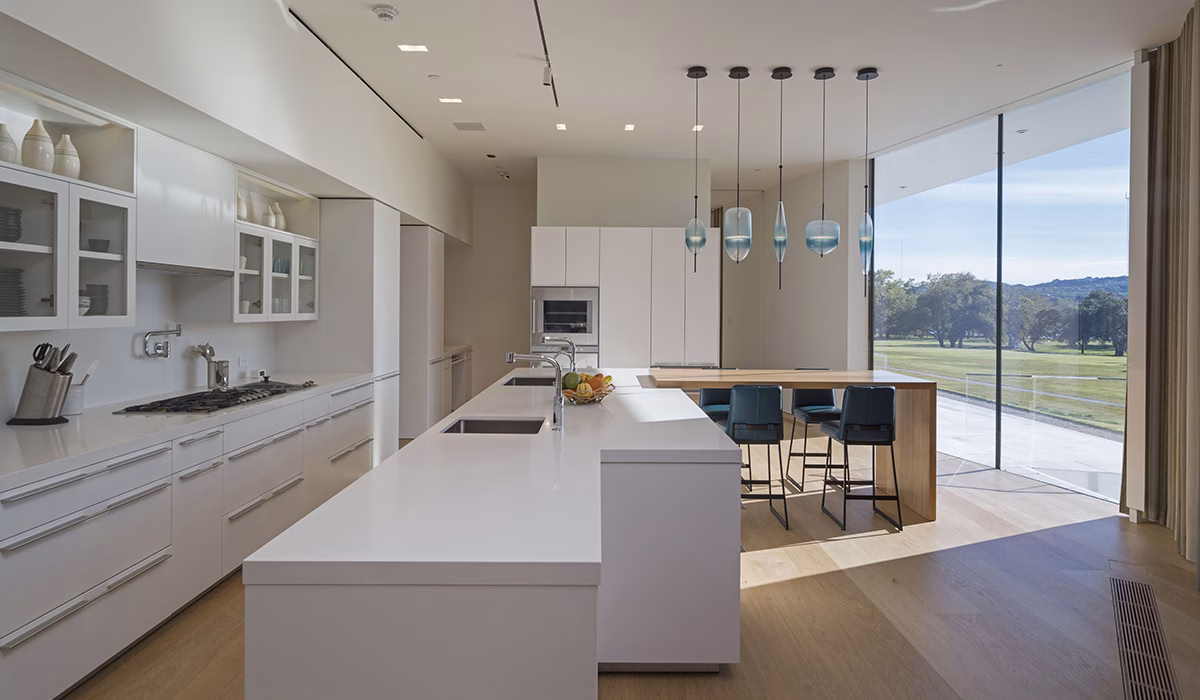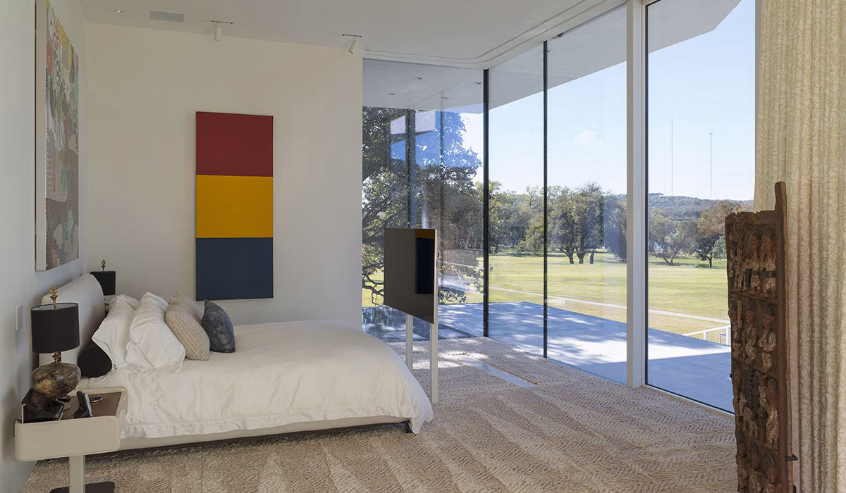 One of the most stunning houses in Austin, this work of art was designed to hold a collection of fine art and the family who loves it. The contemporary home is situated on the banks of Lake Austin.