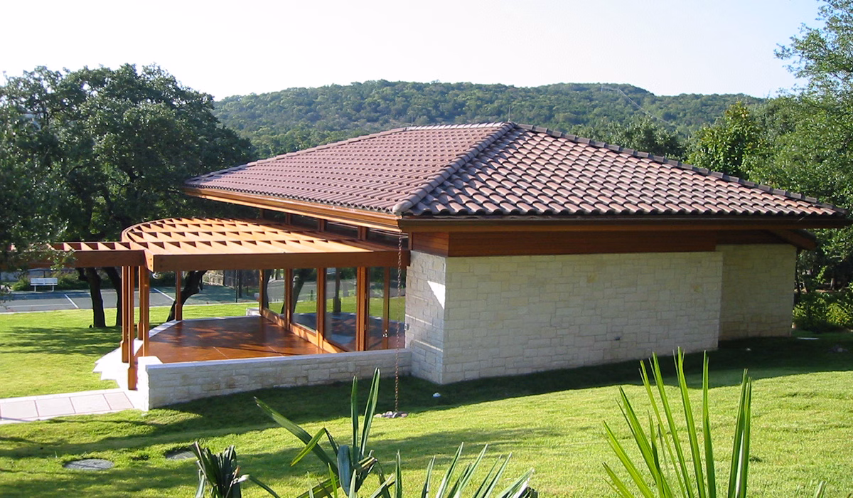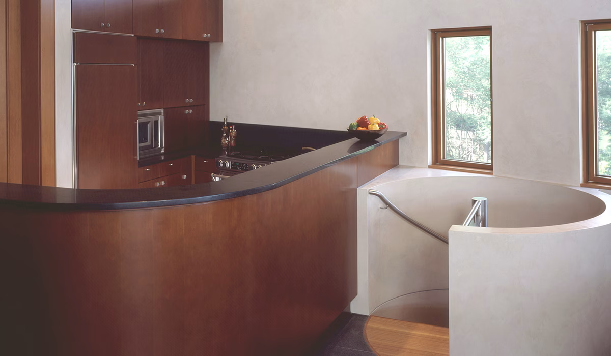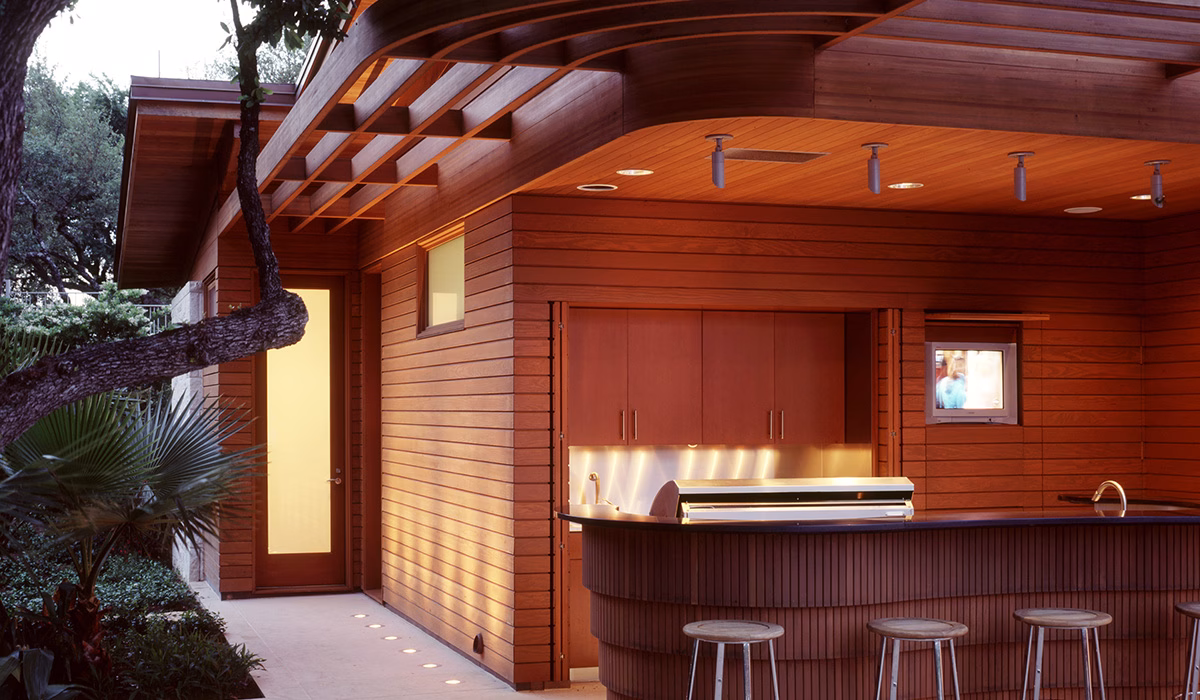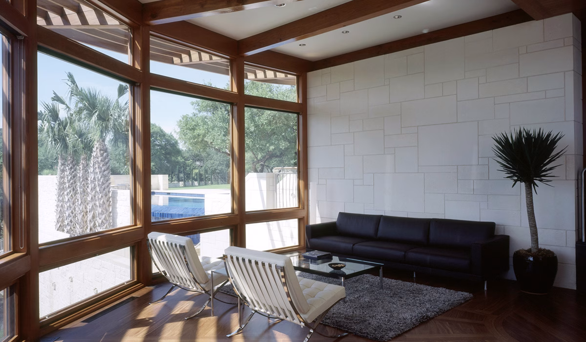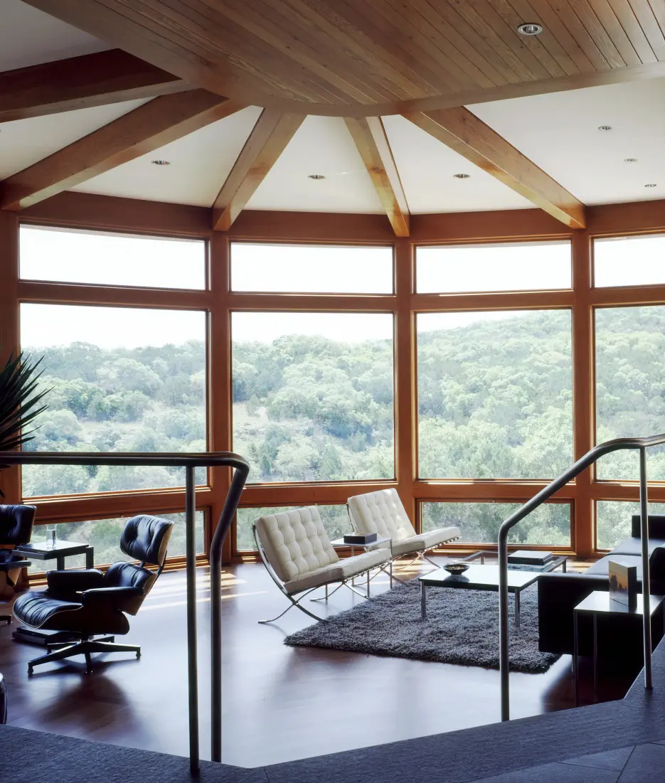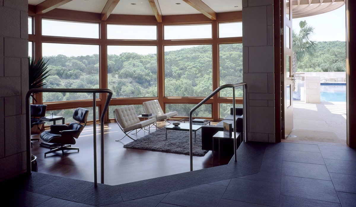 A turret-shaped great room immerses inhabitants in the Texas Hill Country with a panoramic view of the landscape that makes Austin distinct.