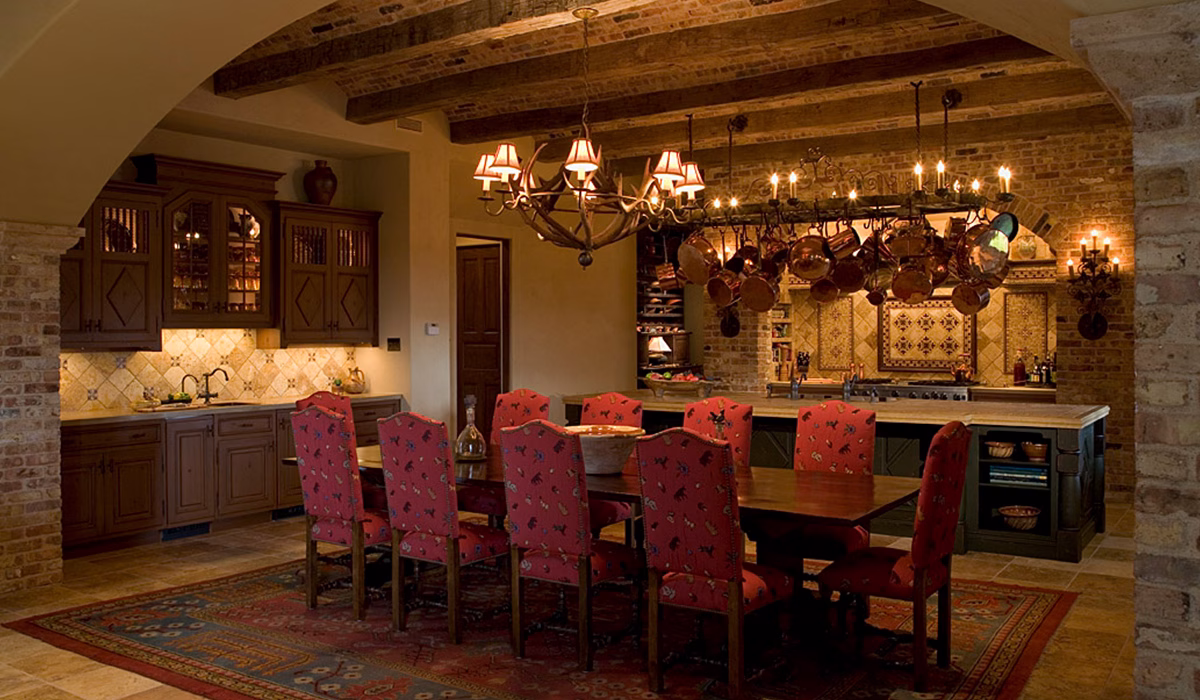 The “centuries old” look of this sprawling 16,000 sf ranch lodge required extensive coordination of design elements, craftsmen and logistics.